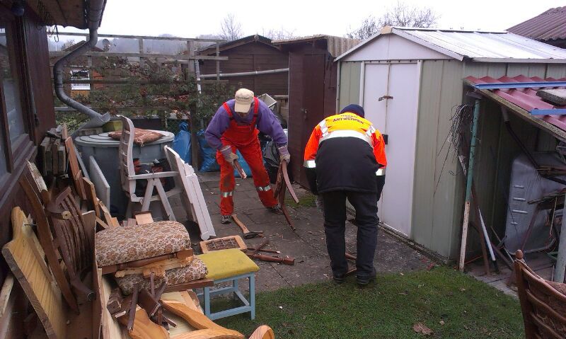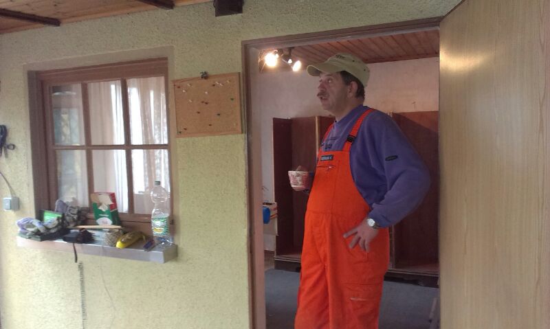 Heute wurde die komplette Laube entkernt. Schränke, Teppich, Stühle und Tische wurden zu Sperrmüll verarbeitet.