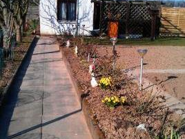 Ich habe die Tulpenzwiebeln aus dem alten Garten in die Beete gesteckt.