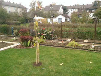 Fünf Obstbäüme habe ich heute bei der Baumschule Döring in Heckershausen erworben. Gekauft, in das Auto geladen, zum Garten gefahren und sofort eingebuddelt.