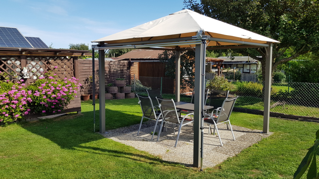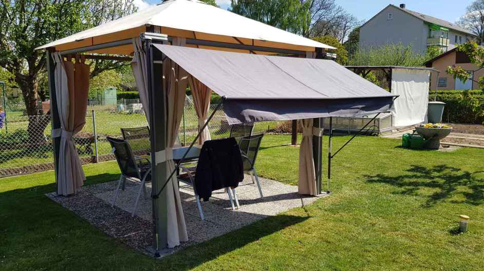 So langsam geht das Gartenjahr zu Ende. Die Seitenschals des Pavillions sowie der Markisenstoff wurden abgehangen