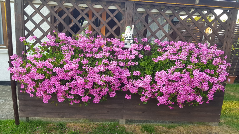 Blick auf die Hängegeranien