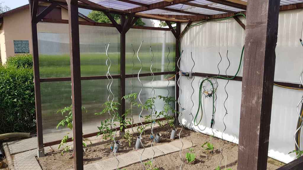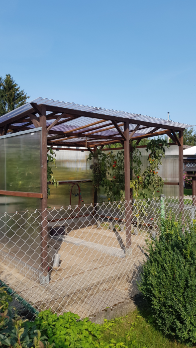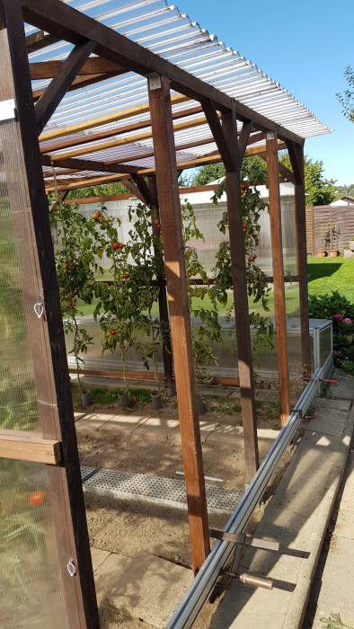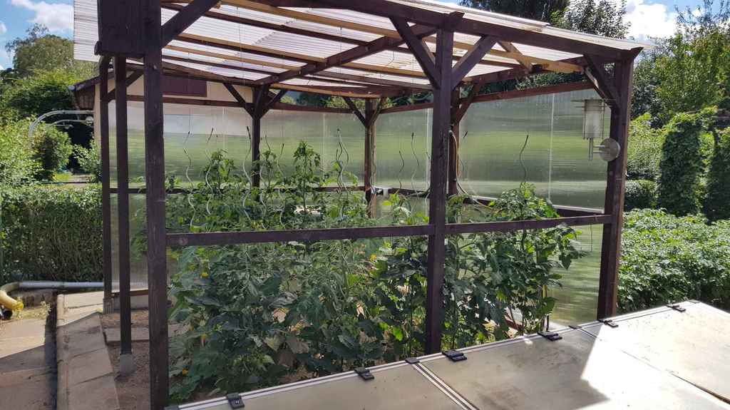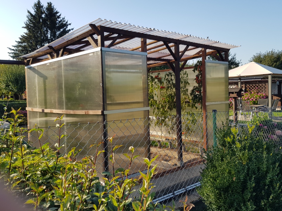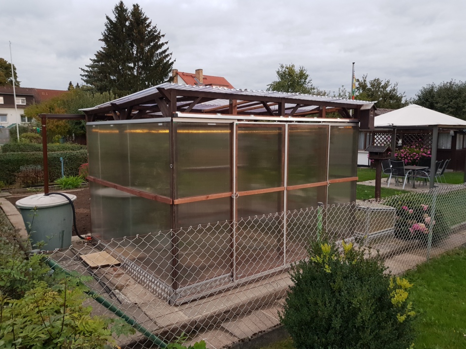 Das Gewächshaus hat eine Seitenverkleidung bekommen und die weiße Kunststoffplane wurde ebenfalls durch Hohlkammerplatten ersetzt