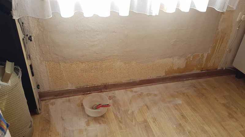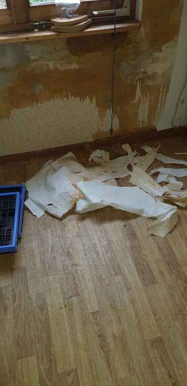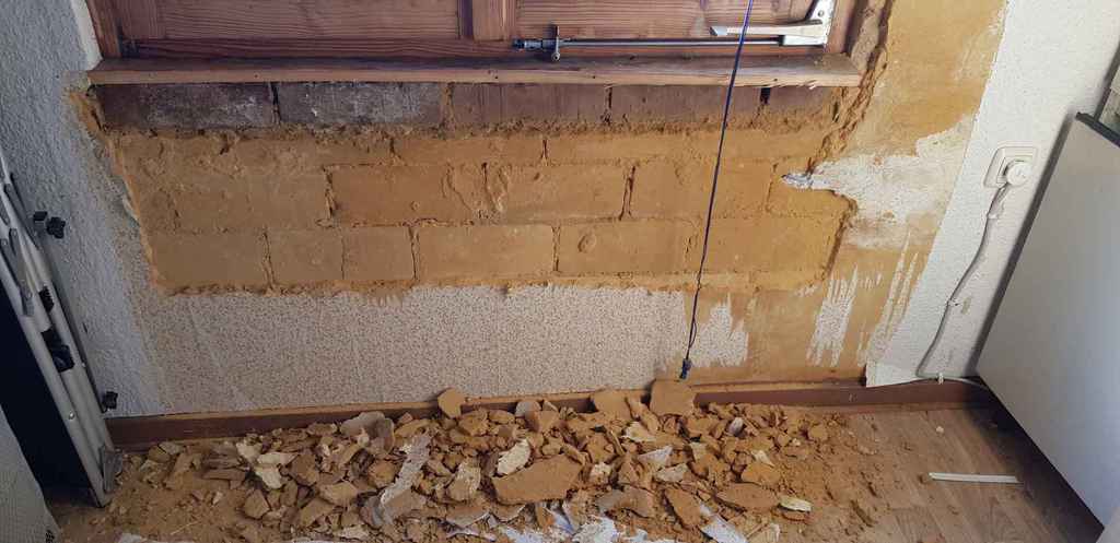 Welche eine Entdeckung, unter dem Fester hatte sich Schimmel gebildet. Ich habe nun die Tapete entfernt, um heraus zu finden, wo das Wasser in die Wand eingedrungen ist. Man kann es schön erkennen, unter dem Fenster ist alles naß.