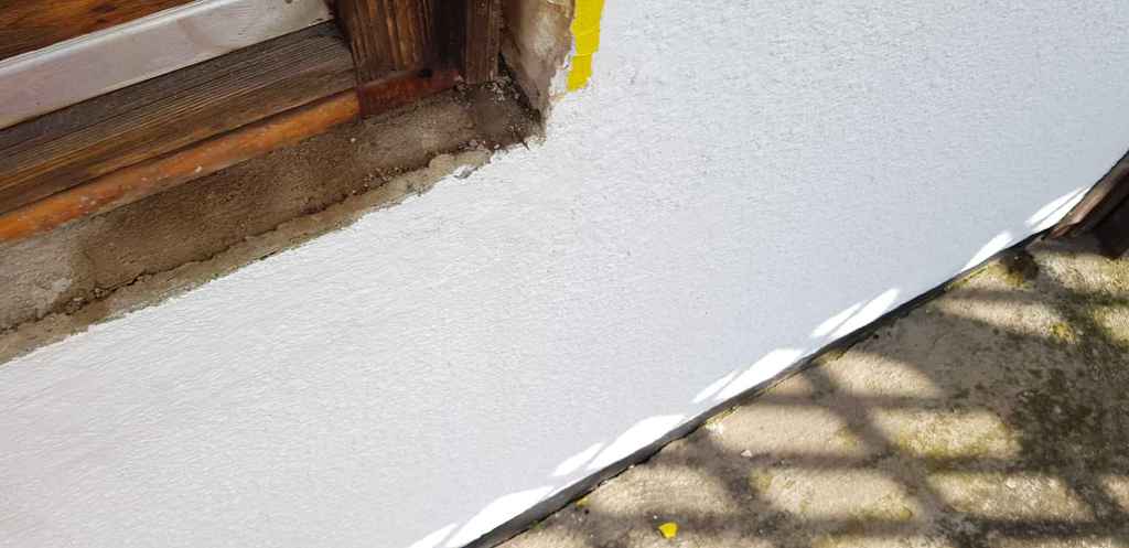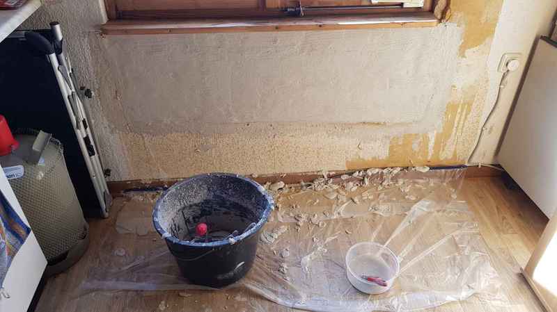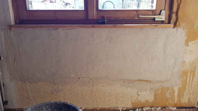 Nachdem die Wand ausgetrocknet ist, habe ich sie verputzt.und tapeziert.