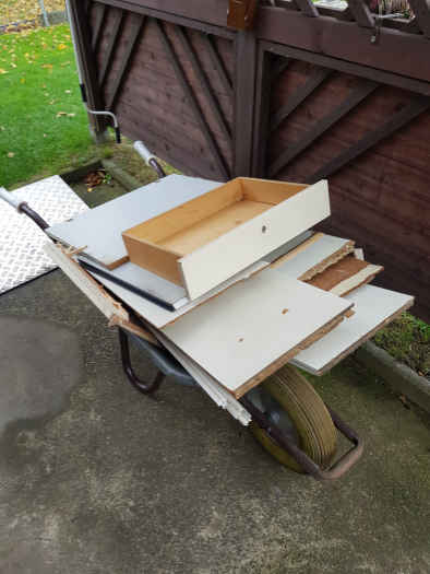 Der alte Schrank in der Laube hat seine Dienste getan. Jetzt kann er entorgt werden.