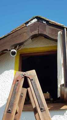 Die Wespen haben sich einen Weg unter das Dach gesucht.