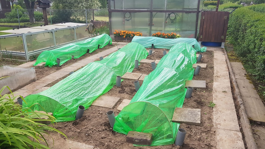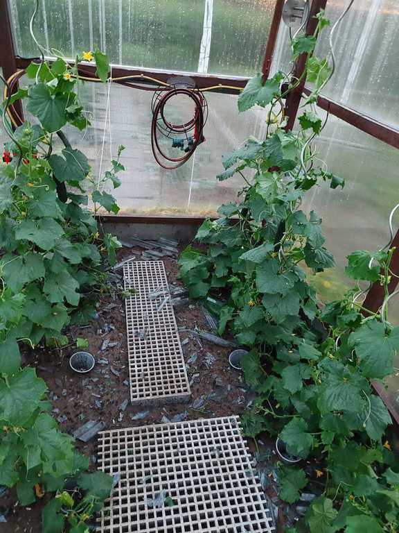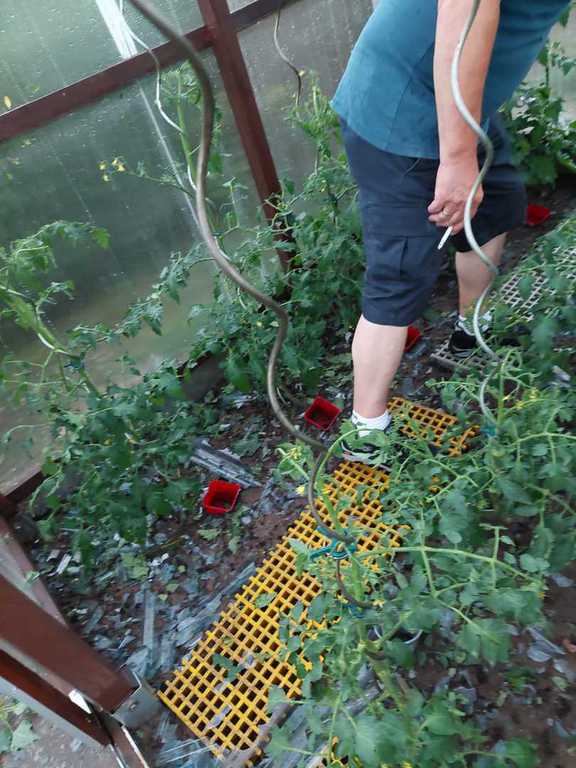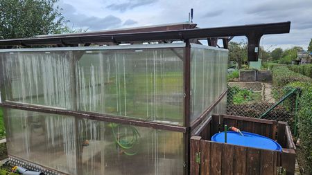 Die Versicherung habe ich am 01.07.2023 angeschrieben und eine Schadmeldung mit Fotos per E-Mail zugesendet. Am Montag den 03.07.21023 wurde ich informiert das es der Schadenabteilung übergeben wurde. Um den Schaden so gering wie möglich zu halten, haben Jörg und ich noch am 28.06.2023 flüssig Bitumen im Baumarkt gekauft und am 29.06.2023 die Löcher im Dach verschlossen. Somit ist der Schaden an der Laube erst einmal geflickt. Mal sehen wie die Versicherung sich aufstellt. Das Tomatenhaus haben wir vorübergehend mit Planen abgedeckt. Die Reparatur kann ja erst angegangen werden sobald die Gurken und Tomaten abgeerntet wurden.