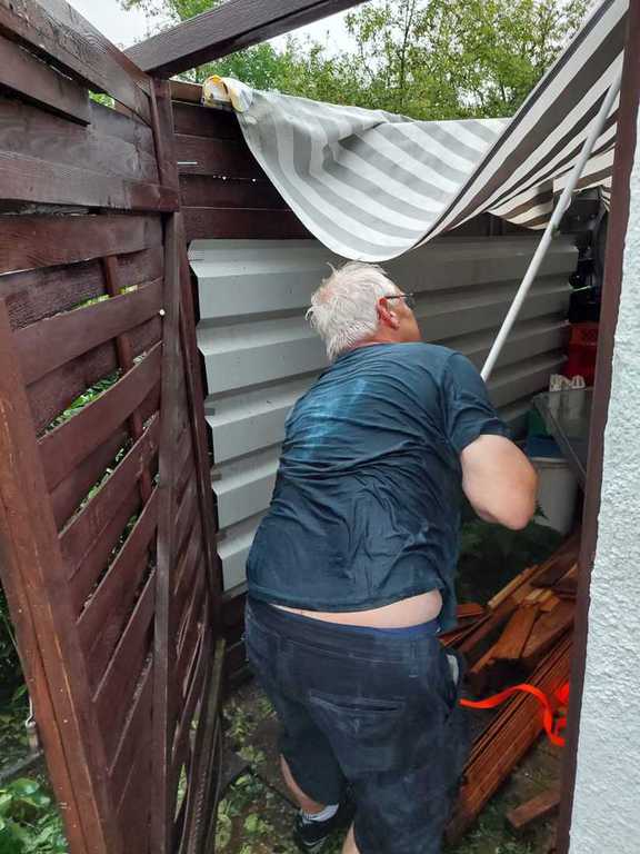 Da wir uns in diesem Zeitraum im Urlaub befanden, sorgten sich unsere Freunde Jörg und Bettina um den Garten. Kaum hat das Unwetter nachgelassen waren beide schon da und fingen an, das Chaos wieder zu beseitigen. Deshalb vielen Dank euch Beiden.