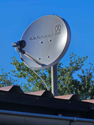 Nachdem das Dach nun komplett aufgebaut ist, konnte die neue Sat-Schüssel auch montiert werden.