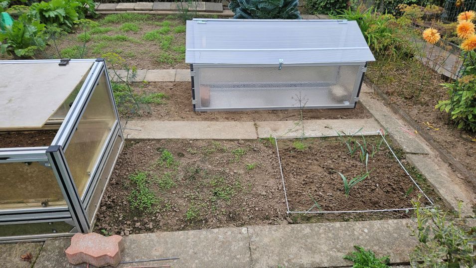 Mein neu gebautes Anzuchtfrühbeet hat seinen Platz gefunden.