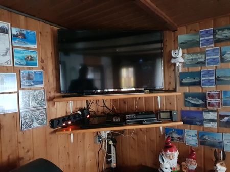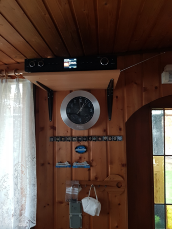 Die alte Radioanlage wurde durch ein DAB+ Radio und einem kleinen Verstärker ersetzt. Um den besten Empfang zu gewährleisten habe ich das Radio neben der Tür platziert. Somit hat sich unter dem TV einiges verändert.