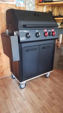 Wir haben uns einen neuen Gsgrill der Firma Enders zugelegt. Ein paar Veränderungen habe ich vorgenommen. Zum Beispiel wurden die Miniräder durch Rollen ersetzt.