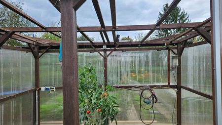Am Gewächshaus habe ich die behelsmäßigen Planen entfernt.Die Dachrinnen ist montiert. Somit kann das neue Dach aus 6mm Hohlkammerplatten montiert werden.