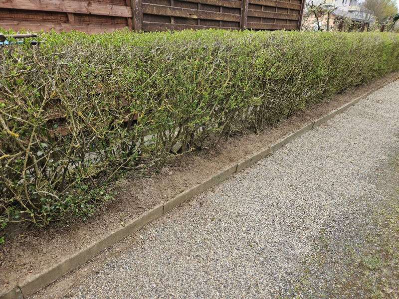 Die Außenhecke wurde vom Unkraut befreit